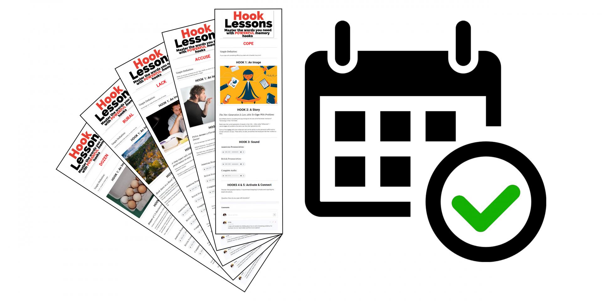 When you get a new Hook Lesson every day your English improves every day. AND you save a ton of time because I do the lesson-building work for you!